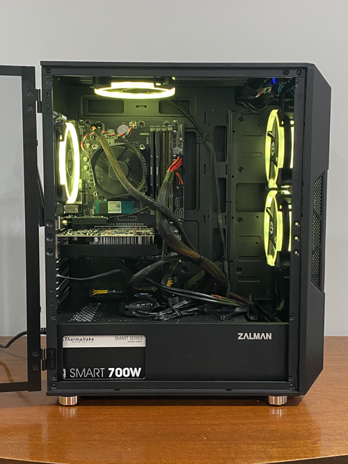 Status: ID: PMR012 OS: Windows® 11 Home CPU: Intel® Core i5-12600 CPU COOLER: ID-COOLING® FROZN A400 ARGB MOTHERBOARD: MSI® PRO H610M-G WiFi DDR4 ProSeries RAM: 32GB DDR4 (2 x 16GB) SSD: 1 TB NVMe PCIe M.2 GPU: Integrated Intel® UHD 770 (GeForce 3060 +add $290) WiFi: OnBoard WiFi 5/BT 4.2 PSU: Thermaltake® Smart 700W CASE: GameMax® VistaTempered Glass + Mesh CASE FANS:120mm RGB x 5 w/remote SOFTWARE: Windows® 11, LibreOffice® 24.8 **pre-owned Abbreviations/Definitions