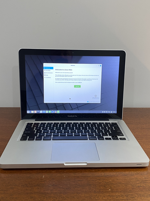 Status: ID: PMR008 [MacBook Pro A1278 13 inch, Mid 2010] OS: LinuxMint 21.3 [no MacOS] CPU: Intel® Core® 2 Duo @2.4GHz RAM: 8GB DDR3 HDD: 250GB GPU:GeForce320M WiFi/Bluetooth: Broadcom@ 802.11ac HD Camera: Yes SOFTWARE: LinuxMint, LibreOffice® Abbreviations/Definitions |